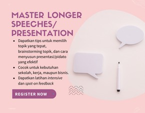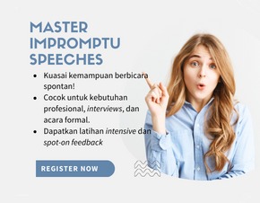 I SPEAK IT - I SPEAK ENGLISH KONSULTASI GRATIS Kelas Coach Utari Mulai dari Rp 112.500 / sesi Essential English Basics Daftar di sini! Basic English for Daily Life: Essential Communication Skills Daftar di sini! Kelas Coach Yanti Mulai dari Rp 75.000 / sesi Conversation Class Daftar di sini! Kelas Lernzentrum Mulai dari Rp 135.000 / sesi Mastering Confidence in Speaking English for Freelancers Daftar di sini! Mastering Confidence in Speaking English for Business Workers Daftar di sini! Kelas Coach Dinny Mulai dari Rp 75.000 / sesi IELTS Speaking & Writing Daftar di sini! TOEFL Grammar Class Daftar di sini! English Speaking Class for Adults Daftar di sini! English Speaking Class for Kids Daftar di sini! Engaging Performance Daftar di sini! Master Impromptu Speeches Daftar di sini! Master Long Speeches/Presentation Daftar di sini! Kelas Libra Education Institute Mulai dari Rp 75.000 / sesi IELTS Preparation Daftar di sini! TOEFL Preparation Daftar di sini! Professional/ESP Conversational English Daftar di sini! Advanced Conversational English Daftar di sini! Basic Conversational English Daftar di sini! Senior High English Daftar di sini! Junior High English Daftar di sini! Primary English Daftar di sini! Pilih Kelas Bahasamu yang Lain Bahasa Turki! 🇹🇷 Bahasa Jepang! 🇯🇵 Bahasa Mandarin! 🇨🇳 Mau Belajar Skill Lain? Lihat Kelas Lainnya Konsultasi via WhatsApp